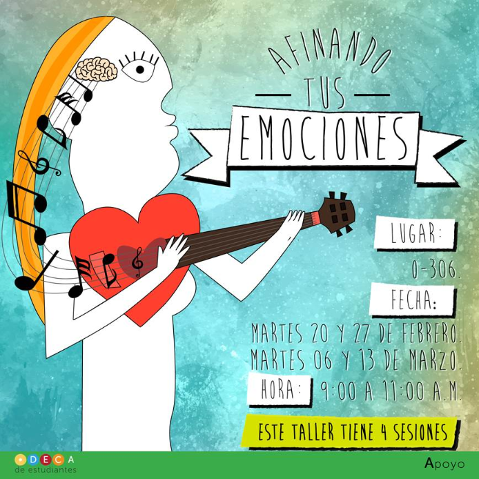 En este taller conoceras el funcionamiento de las emociones en nuestro cuerpo y su influencia en los pensamientos y en nuestras acciones. Además, se abordarán mecanismos para aprender a manejar las emociones con estrategias que incluyen nuestra forma de pensar, las sensaciones físicas y las acciones que realizamos cuando sentimos que las emociones nos controlan.
