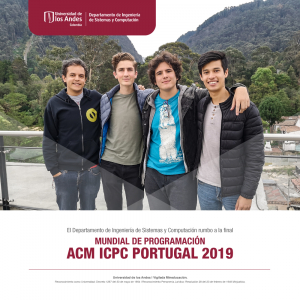 Durante la primera semana de abril, el equipo UNiandes de estudiantes del Departamento de Ingeniería de Sistemas y Computación, compuesto por Juan Camilo Bages, Jose Daniel Fandiño y Pietro Ehrlich, estará representando a la Universidad de los Andes en la final mundial de programación competitiva organizada por la ACM, la fundación ICPC (International Collegiate Programming Contest) y Baylor University. Este año la final se llevará a cabo en la ciudad de Porto, en Portugal.