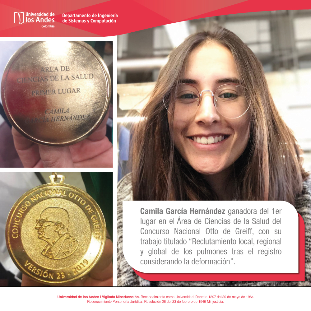 Felicitamos a Camila por su logro alcanzado con su trabajo titulado “Reclutamiento local, regional y global de los pulmones tras el registro considerando la deformación” y agradecemos a la profesora Marcela Hernández Hoyos por su acompañamiento y dirección en este trabajo.