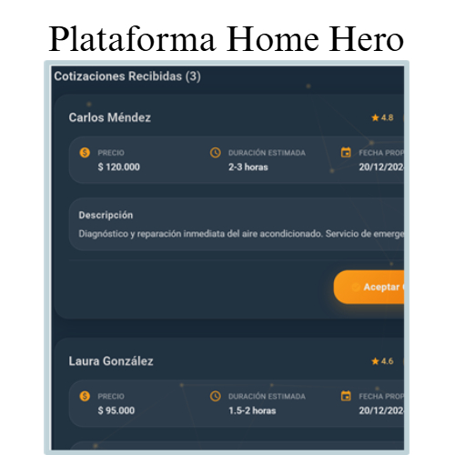 HomeHero ofrece a los técnicos un canal de trabajo que valora su experiencia, mejora su trazabilidad y les permite recibir más solicitudes sin depender exclusivamente del voz a voz. Los Heros manifestaron que el sistema les brinda acceso a clientes verificables y disminuye los desplazamientos innecesarios gracias al algoritmo de asignación por cercanía. Uno de ellos afirmó: “Con HomeHero pude recibir trabajos más cerca de mi zona y sin perder tiempo buscando clientes. Eso me ayuda a ganar más en menos horas.” Este enfoque contribuye a la dignificación del trabajo técnico y a la sostenibilidad económica del profesional.