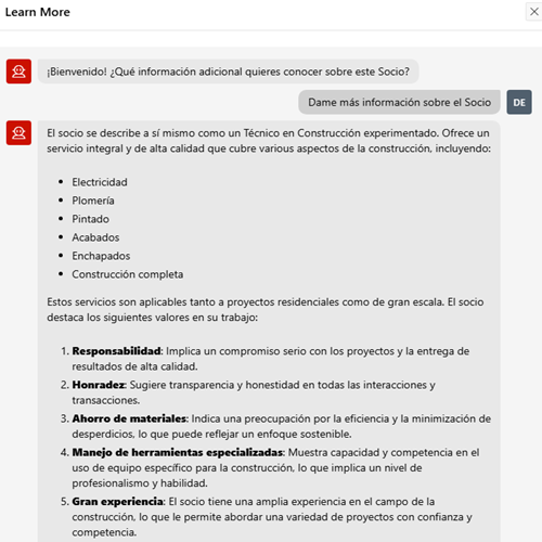- Se implementó un módulo para que los socios cargaran fotos, videos y evidencia de trabajos anteriores, construyendo un portafolio digital robusto y verificable. También se integraron campos de experiencia, habilidades técnicas, testimonios en audio y factores diferenciadores para fortalecer su presencia en la plataforma.